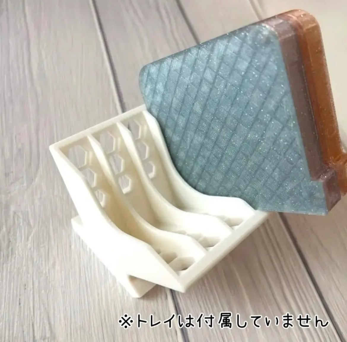 ダイヤモンドアートのトレイを斜めに5個並べて収納するラックです。
