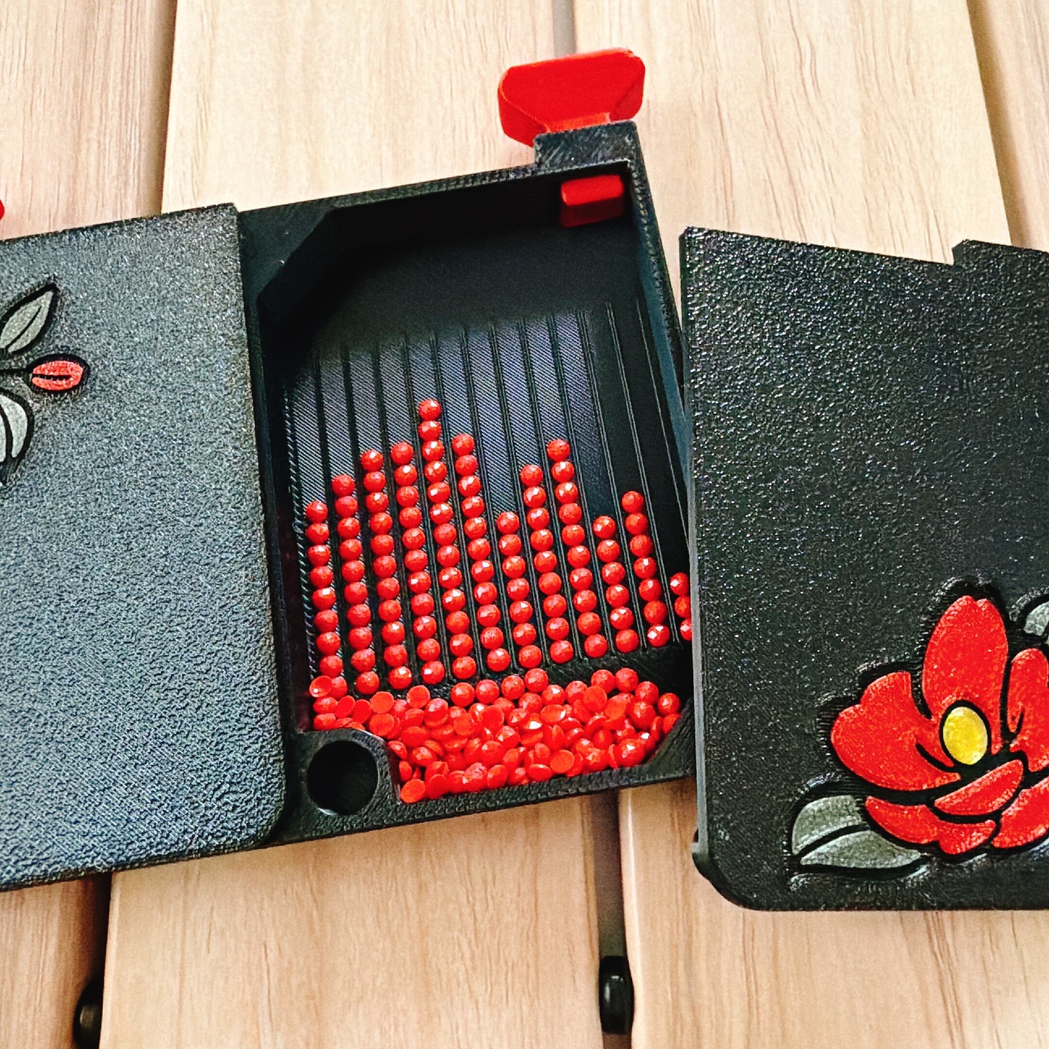 ビーズを入れる場所が2箇所ありますので、蓋を外してオープンに使ったり、片方だけ蓋を閉めて1色だけ、、と様々な使い方ができます。