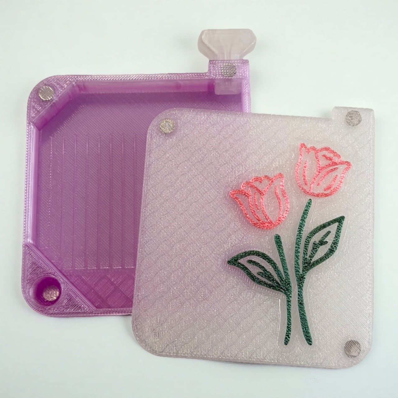 軽い衝撃対策や、手軽な蓋の開け閉めを想定してマグネットの蓋を採用しております。