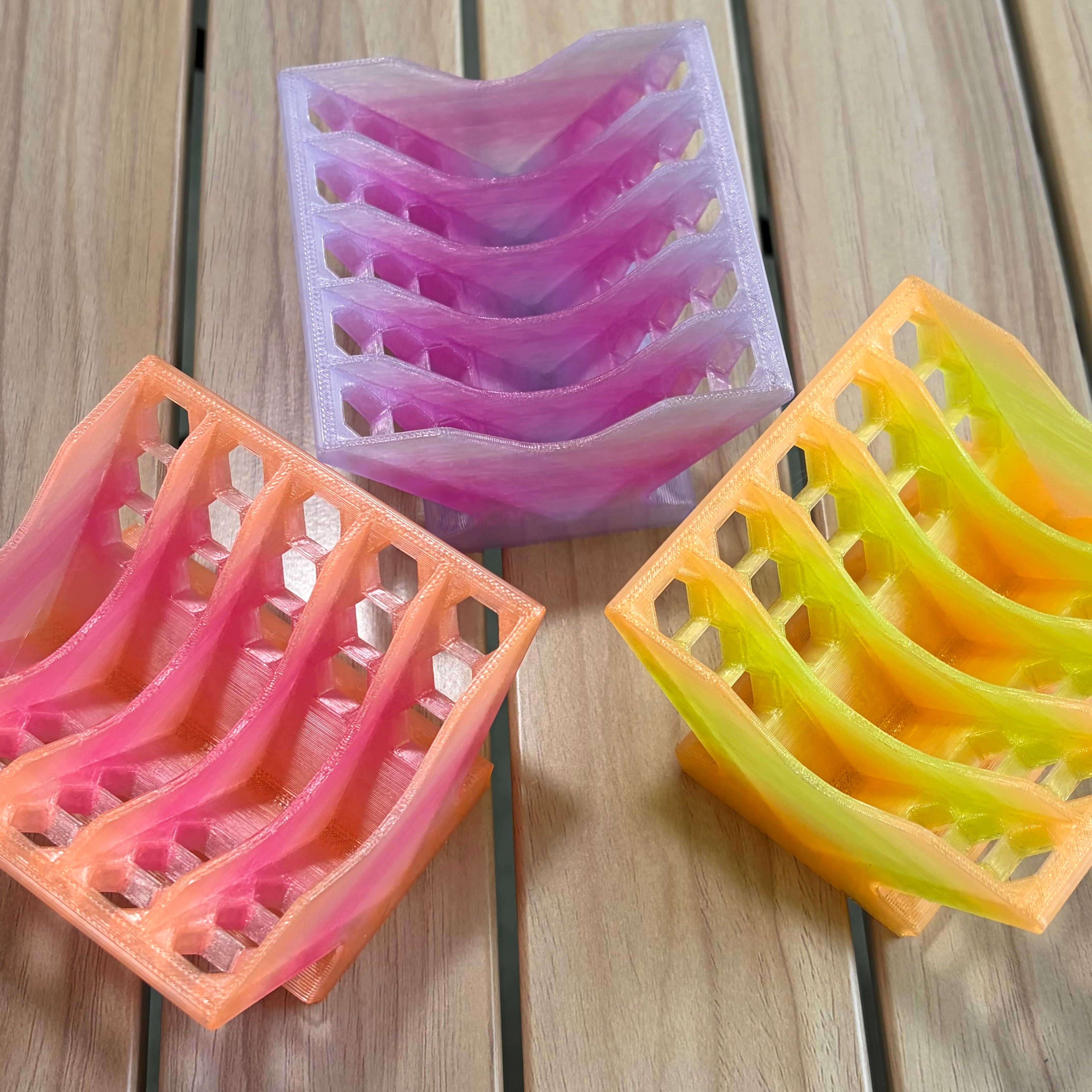 ダイヤモンドアートのトレイを斜めに5個並べて収納するラックです。